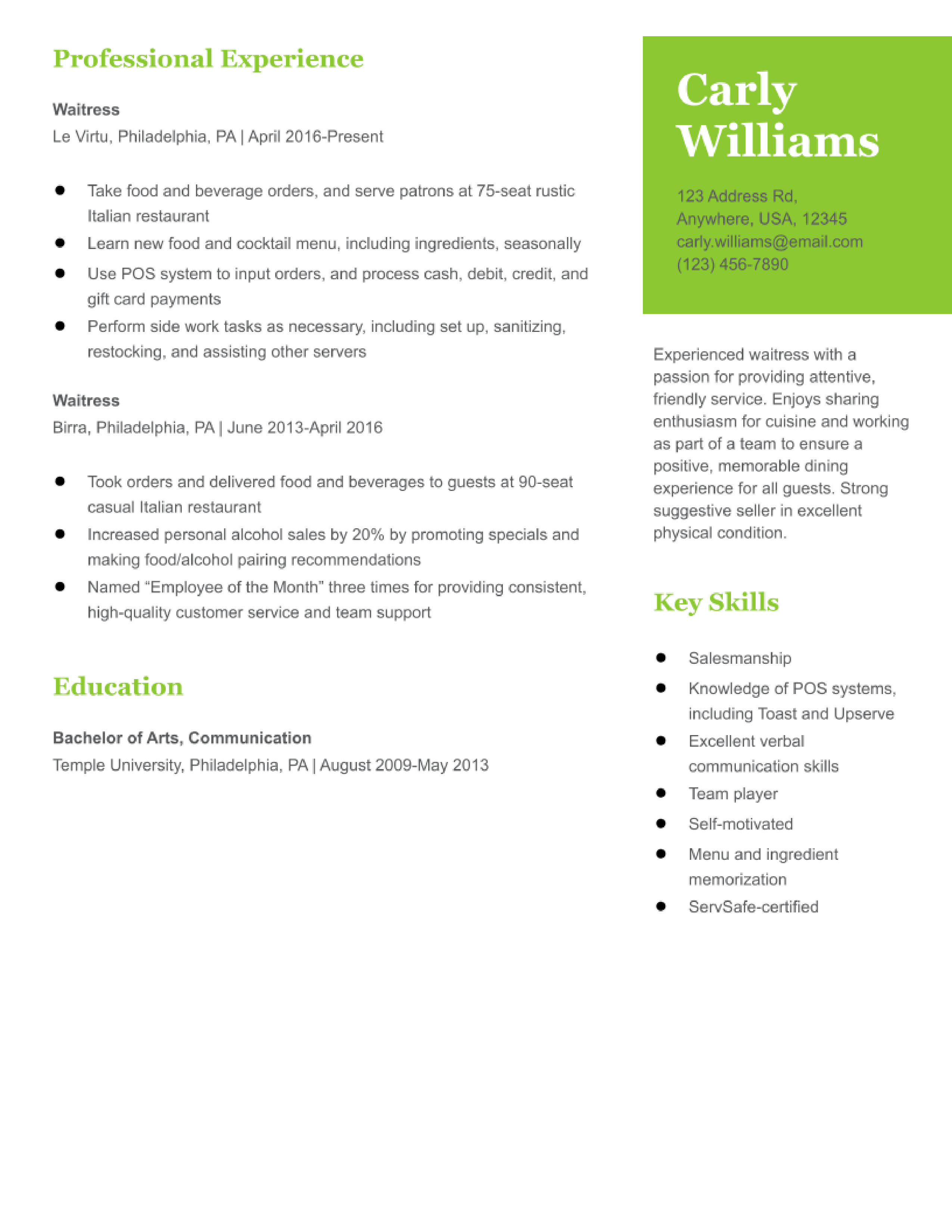 Waiter Waitress Resume Examples In 2022 Resumebuilder Com